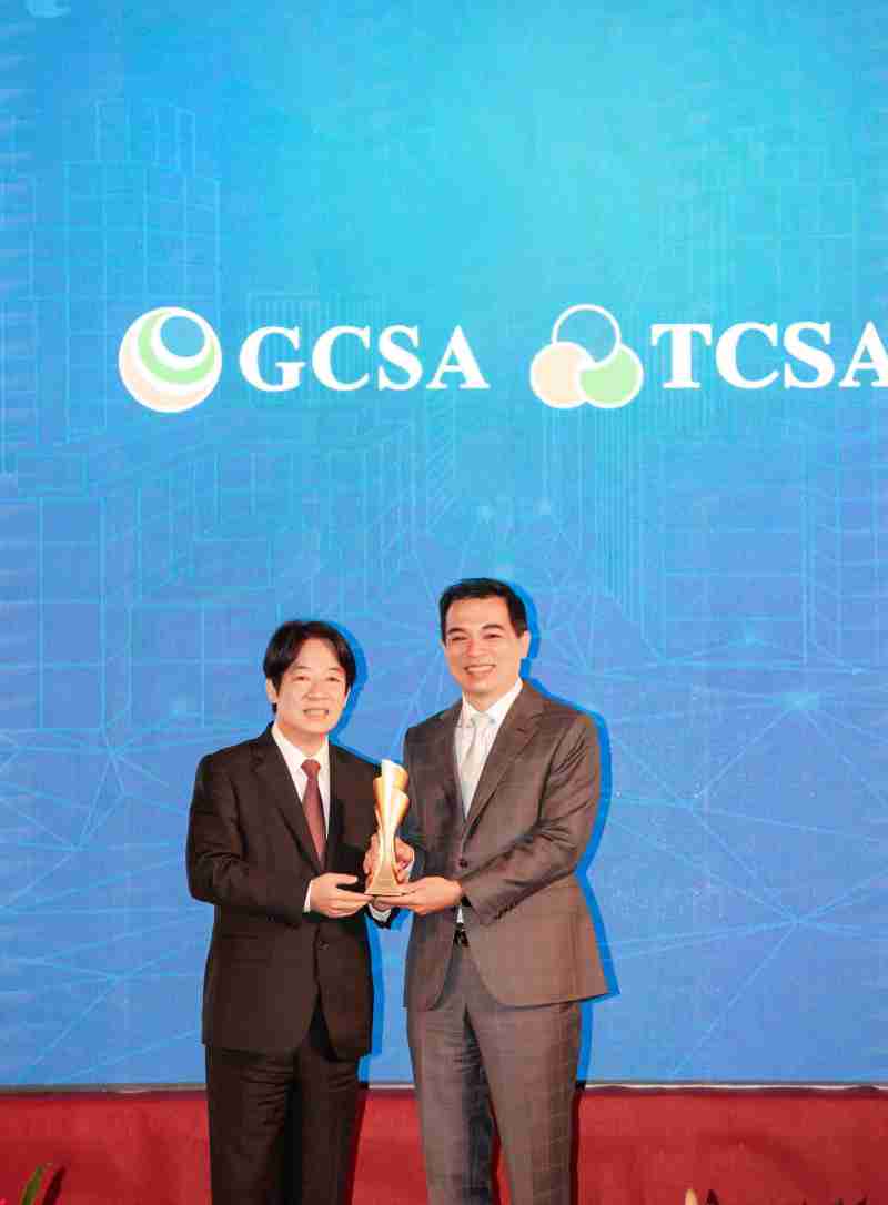 达全方位永续表现获全球永续奖及台湾永续奖肯定,,,由副总统赖清德颁奖 (左),,,william威廉中文官网总经理柯富仁 (右) 代表领奖