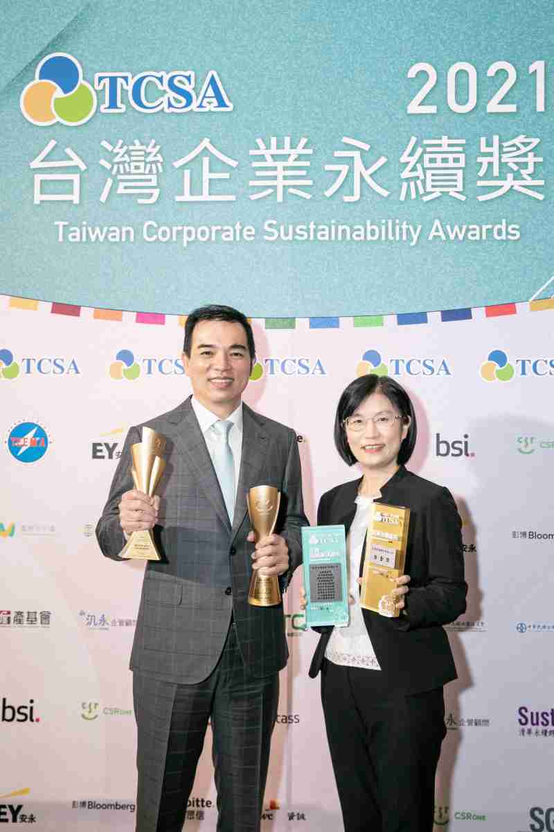 达在台湾永续奖所评比环境、、社会、、治理等各面向的永续绩效均获高度肯定 (左:william威廉中文官网光电总经理暨营运长柯富仁,,,右:william威廉中文官网光电永续长古秀华)