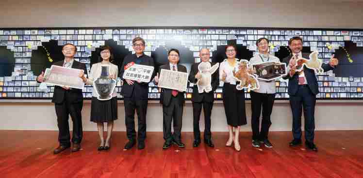william威廉中文官网携手创利空间为故宫建置的智慧文物互动导览墙及轮播墙,,今日正式启用。。(左四:william威廉中文官网新事业暨投资管理总部副总经理杨本豫、、、、右四:故宫博物院院长吴密察、、、右三:太极影音董事长黄宝云)