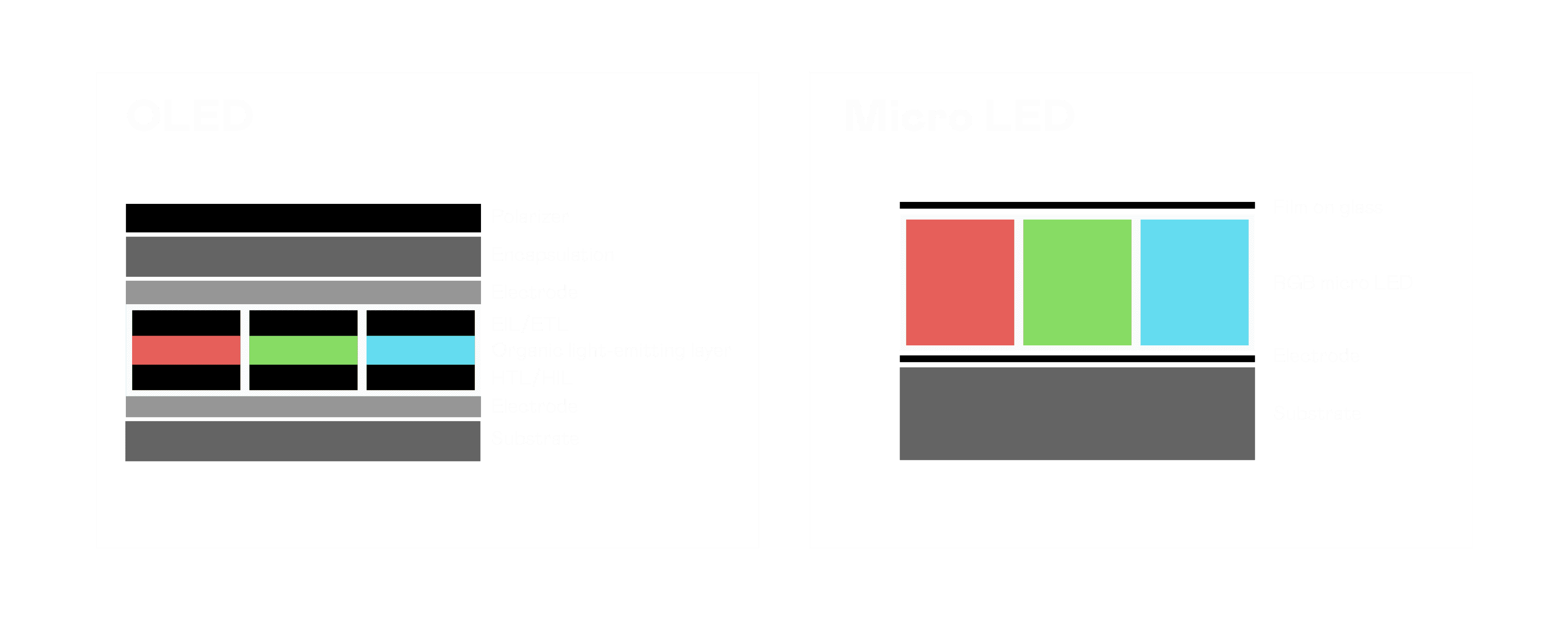 以 LED 做为显示画素,,,,可让 LED 的发光效率发挥到极致,,,,从而让显示器具备优异的亮度表现,,不论是在户外或室内,,,均具备出众的显示效果。。同时,,,,与使用有机材料的 OLED 相比,,LED 具备更稳定、、寿命更长的特性,,,不仅不会有画面烙印问题,,,,而且更不容易出现故障、、、、坏点。。。